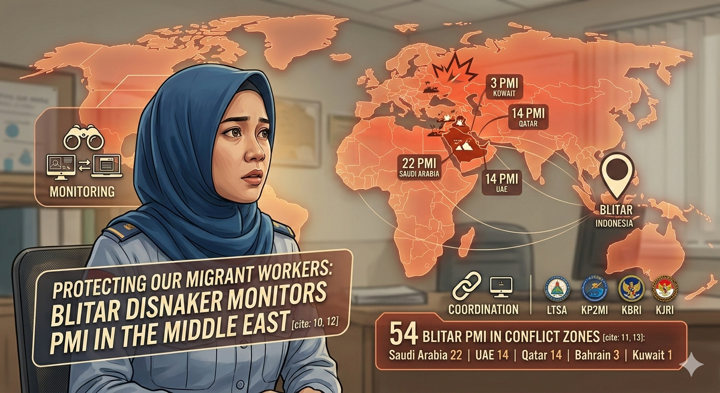 The Blitar Manpower Office (Disnaker) reports that 54 Indonesian migrant workers (PMI) from Blitar Regency are currently employed in several Middle Eastern countries affected by instability.