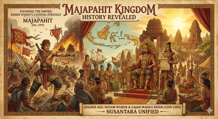 RADAR TULUNGAGUNG – The Majapahit Kingdom history remains one of the most fascinating chapters in Indonesian civilization, marked by strategic brilliance, internal conflict, and a golden era that shaped the archipelago. The story begins with a dramatic twist involving foreign forces and a calculated move by its founding king, Raden Wijaya.