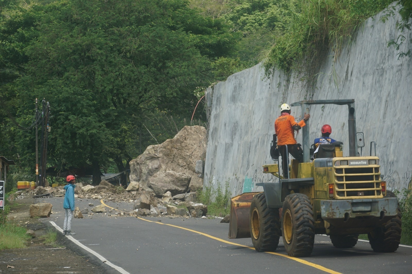 Triadi said crews are still waiting for heavy machinery to arrive before clearing operations can begin. Meanwhile, field officers are mapping the cliff structure above the road to assess the risk of further landslides.