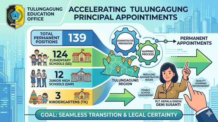 TULUNGAGUNG – The Tulungagung school principal appointments process is moving faster as the local Education Office maps 139 vacant leadership positions across schools and prepares definitive placements.