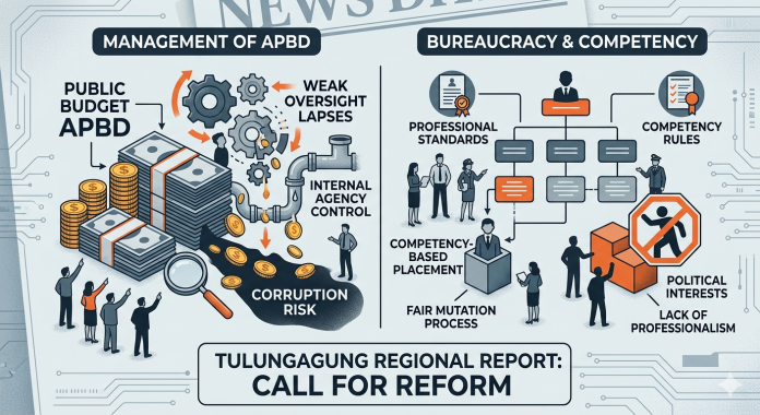 TULUNGAGUNG – Tulungagung regional budget management faces sharp criticism from student groups. They say weak oversight and poor bureaucracy could create space for corruption in local government.
