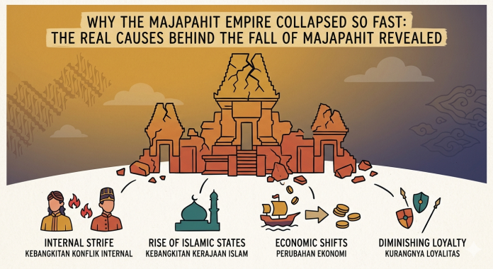 The fall of Majapahit was not a simple event triggered by a single cause. Instead, it resulted from a complex combination of internal and external factors. Contrary to popular belief, historical evidence suggests that Majapahit did not collapse primarily due to an attack from Demak, as often portrayed in later Javanese chronicles.